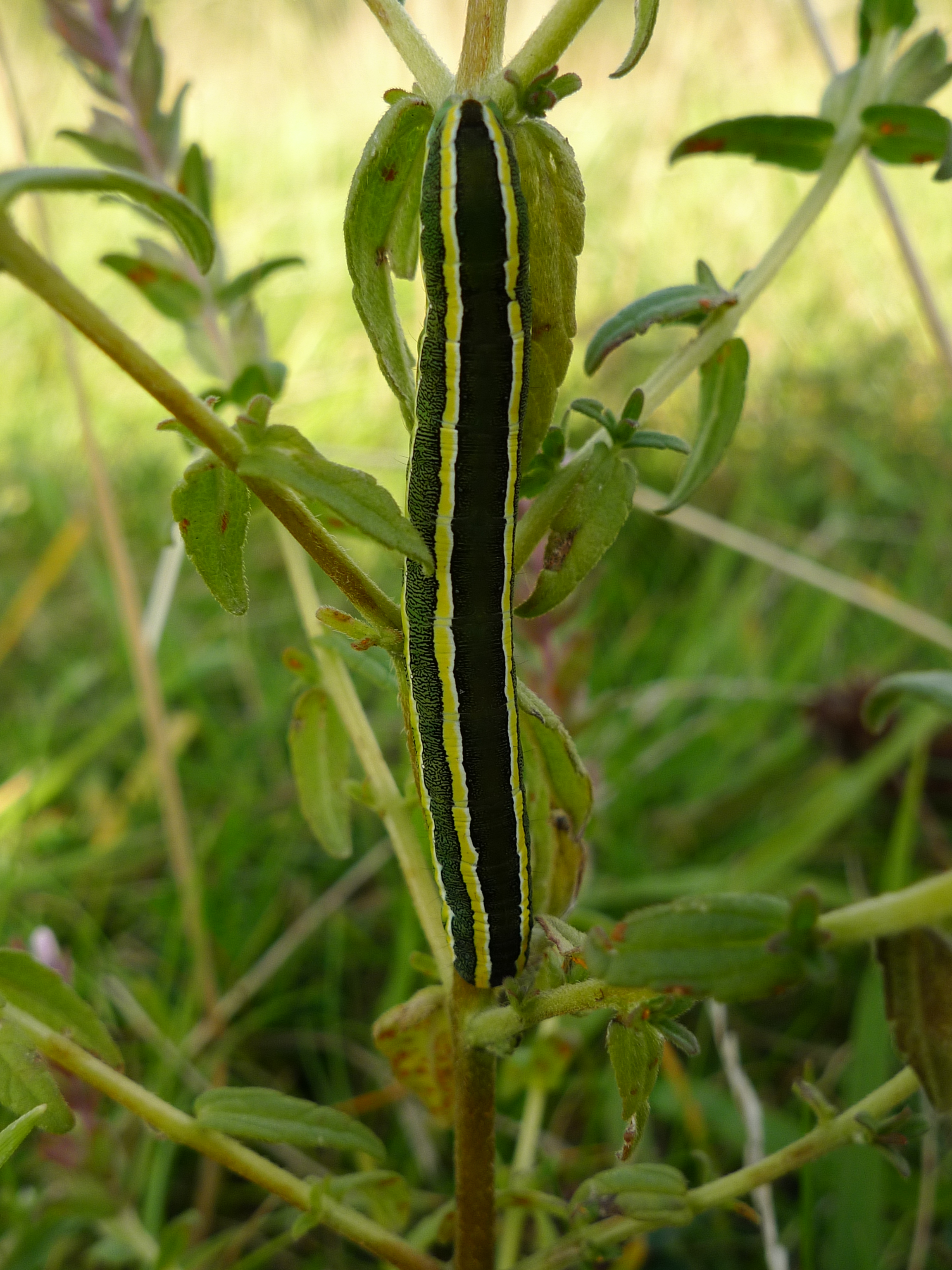 Elsewhere on the hills Mike Poulton photographed a Broom Moth caterpillar feeding on Red Bartsia, and another new botanical record for the Wildlife Trust’s Portway Hill site was a large patch of Sneezewort, so named because its pungent smell supposedly causes sneezing.