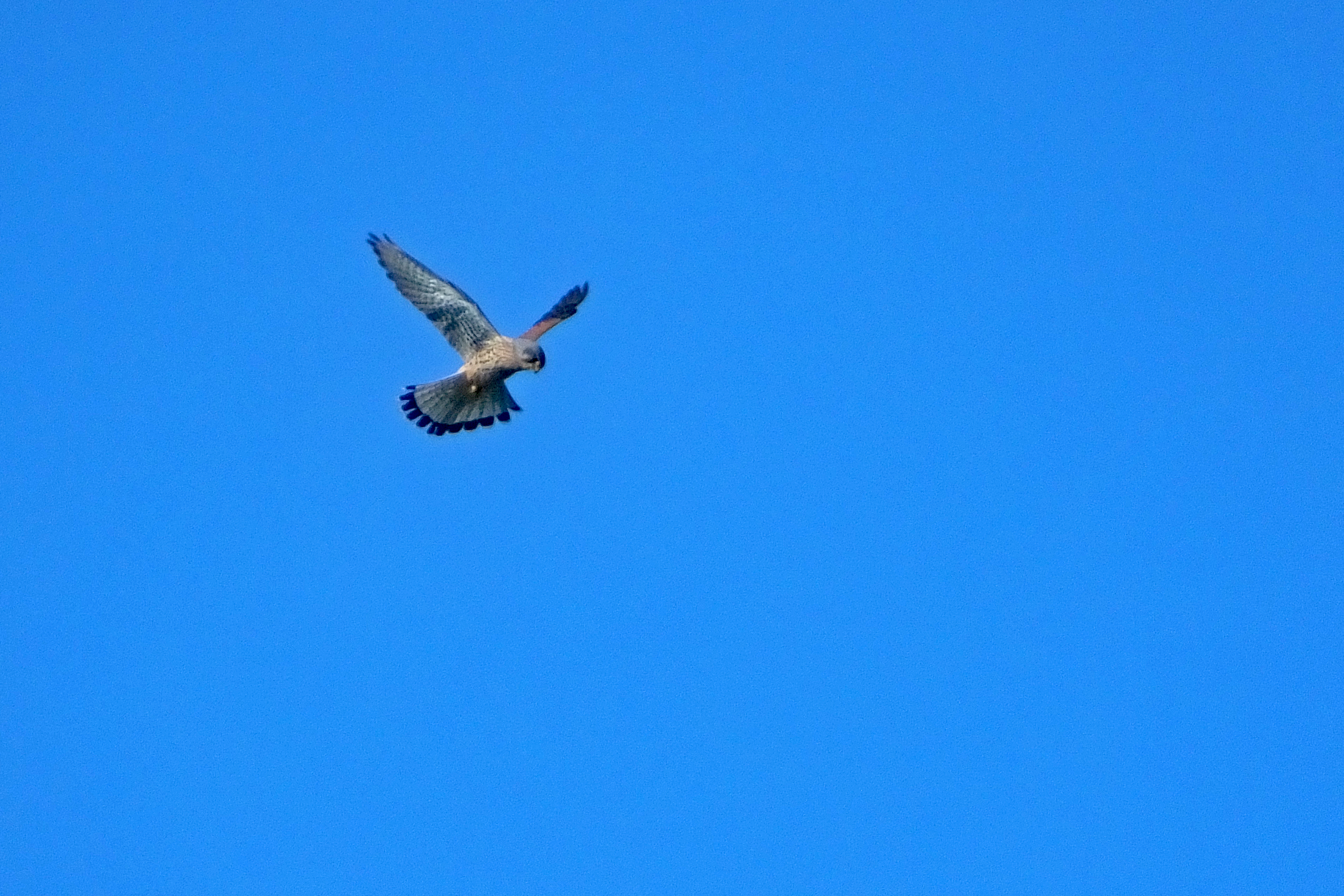 As we approached the upper regions of Portway Hill a Kestrel was hovering above the open grassland and provided a perfect photographic opportunity for those of us with a camera and telephoto lens. Nearby, from the top of the nearby hawthorn hedge, a Blackcap obligingly made its presence known.
