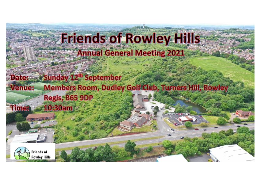 Friends of Rowley Hills 2021 AGM Leave a reply Our Annual General Meeting will be held on Sunday 12th September, 10:30am, at the Members Room, Dudley Golf Club, Turners Hill, Rowley Regis, B65 9DP. The AGM is open to all FORH members and anyone interested in the Rowley Hills and FORH’s work. Share this: Click to share on X (Opens in new window) X Click to share on Facebook (Opens in new window) Facebook Like Loading... Related