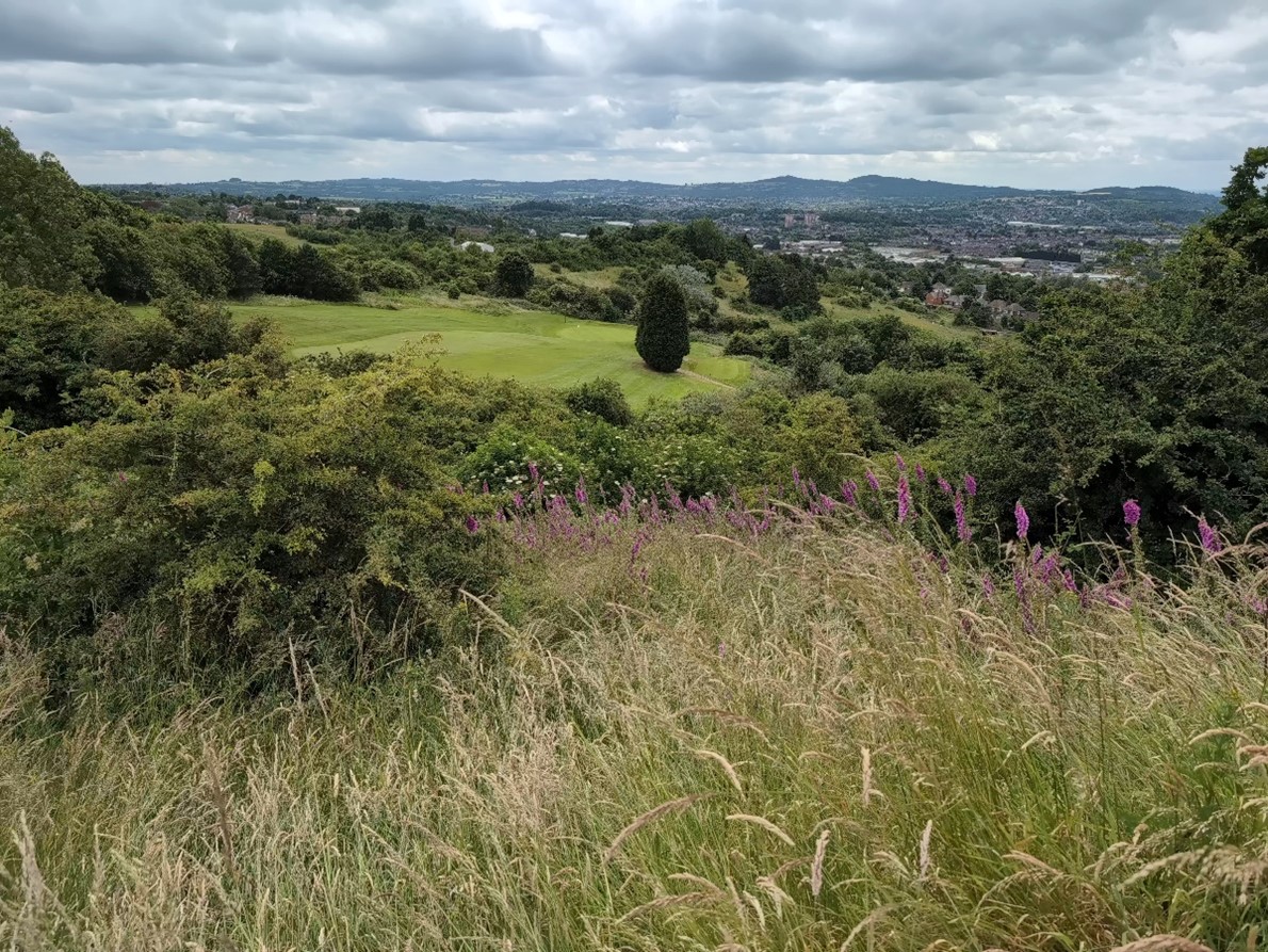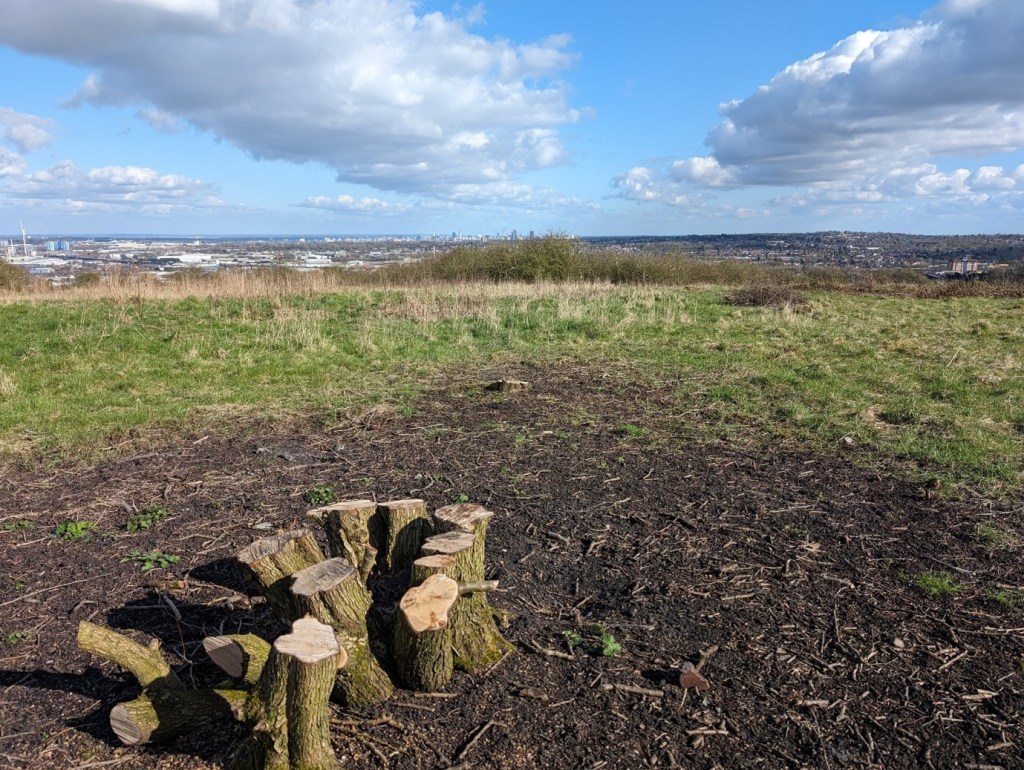 During the first three months of 2024 an extensive thicket of hawthorn near the top end of Portway Hill was cut down to ground-level to provide an uninterrupted view towards the Birmingham City centre skyline, and at the same time create more open space for colonisation by grasses and wildflowers. Since quarrying ceased here in the 1960s hawthorn and bramble have steadily increased to a point where the open grassland areas were reducing each year and without intervention the site would all turn to scrub.