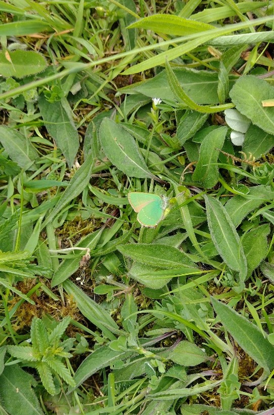 With so many wet and cold days with temperatures below the seasonal average, the impact this had had on butterfly numbers has been quite significant. However, on one of the few brighter days in April a Brimstone was seen flying across the Portway Hill site, and in early May, two Green Hairstreaks were recorded on the same day.