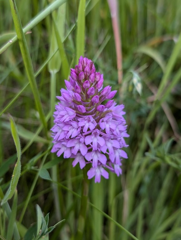 Another Orchid which appears to be on the increase is Pyramidal Orchid, here seen here seen in grassland near the top end of Portway Hill. A second location for this orchid on the hillside.