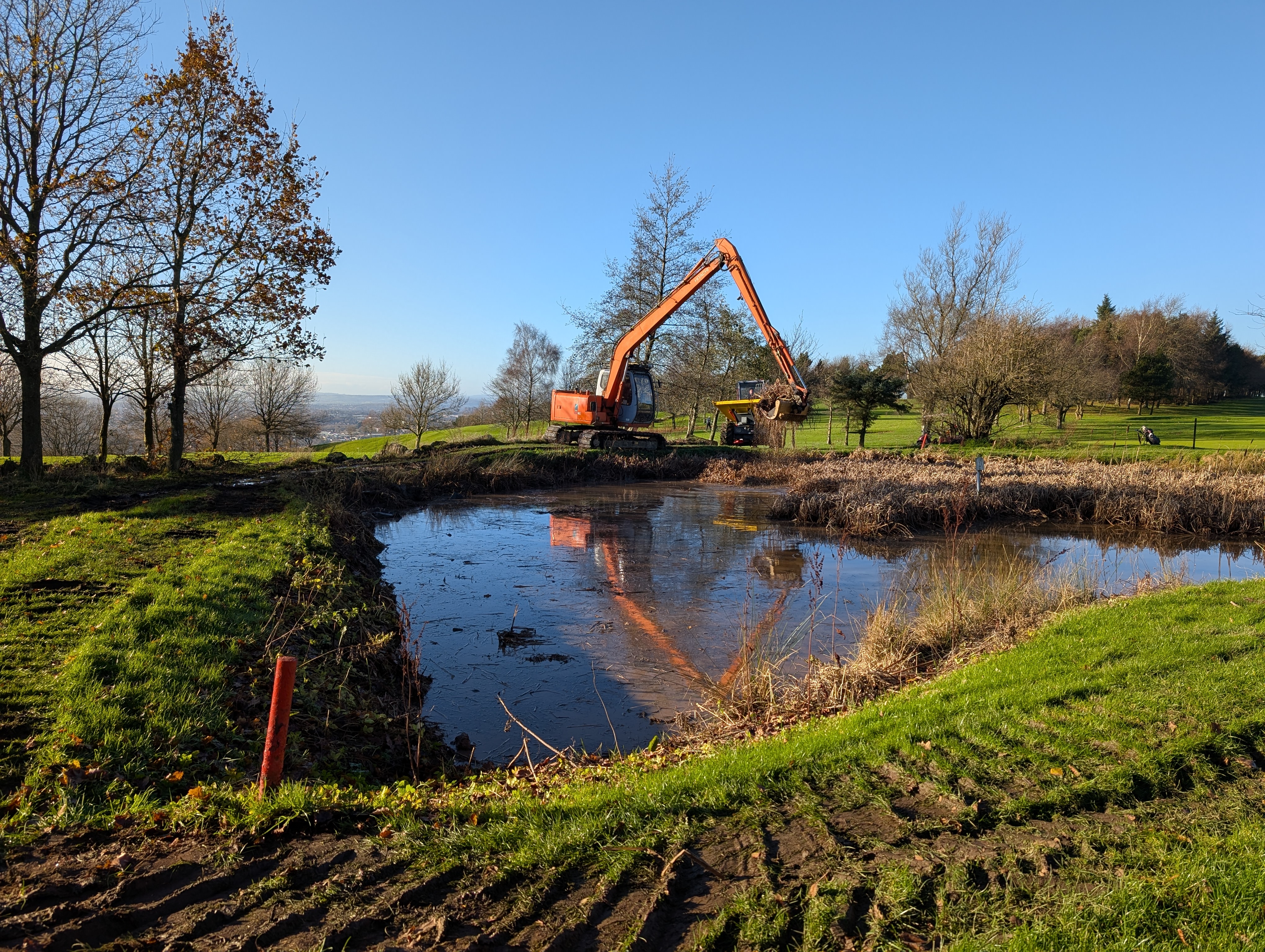 Funding from the Dudley’s Path to Nature Recovery Project was used to provide manpower and machinery for dredging the two choked up ponds on the golf course. Spring fed they are linked by narrow drainage channels. As both Common Toad and Smooth Newt are known to occur on the golf course land. The restoration of the pond to open water will enable spawning to hopefully take place in the spring.