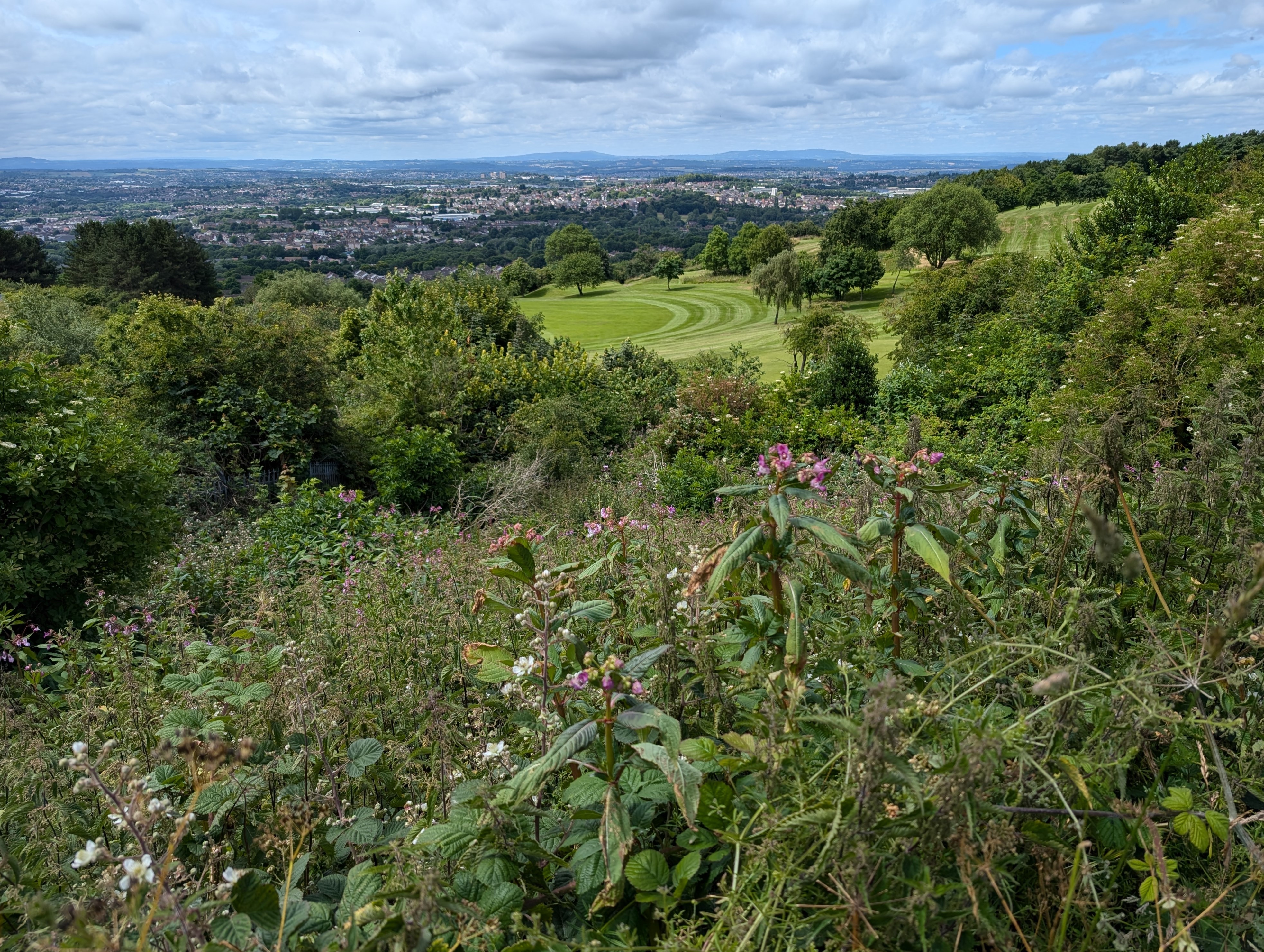 Turners Hill is the highest point in the county of West Midlands standing at 271 metres above sea level. Dudley Golf Club therefore has the distinction of being the highest golf course above sea-level in the West Midlands, and the views from the course on clear days can be quite exceptional. The undulating fairways of this 18-hole course are separated by narrow bands of deciduous and coniferous semi-mature trees. Banks of native wildflowers and grasses surround the fairways, and in spring the wooded slopes are turned blue from 1000s of native bluebells. Sympathetic management is the key, and credit for this goes to Stewart Marshall and his colleagues who manage the course. Nothing is perfect, and in places Himalayan Balsam has become a pest and has formed a monoculture, shading out the native vegetation. On the plus side, the numerous flowers of this invasive annual do provide a valuable nectar source for invertebrates.