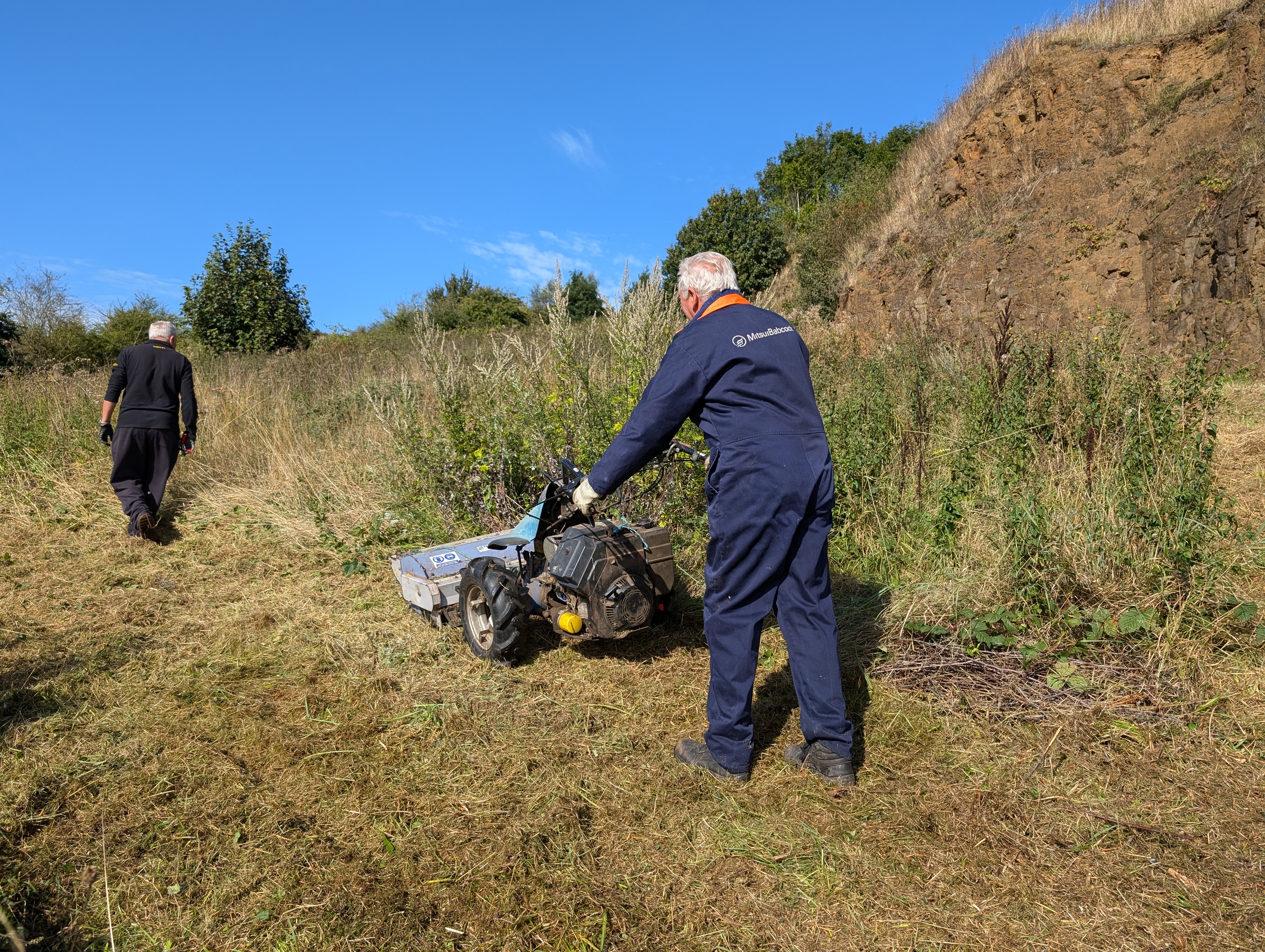 2024 will be remembered for the record rainfall experienced in many parts of the UK, resulting in damaging floods in some parts of the country. Here on Rowley Hills, there is very little likelihood of this ever happening, but in some places the ground does become waterlogged, making some of the paths difficult to negotiate. Widening the paths with the Tracmaster does help to make negotiating the wet areas a little easier, but to do this first requires the removal of any protruding rocks, stones, and lumps of buried concrete to be removed first to prevent damage to the cutters. Carrying out this task is a reminder that most of the Portway Hill site was quarries that were landfilled. The