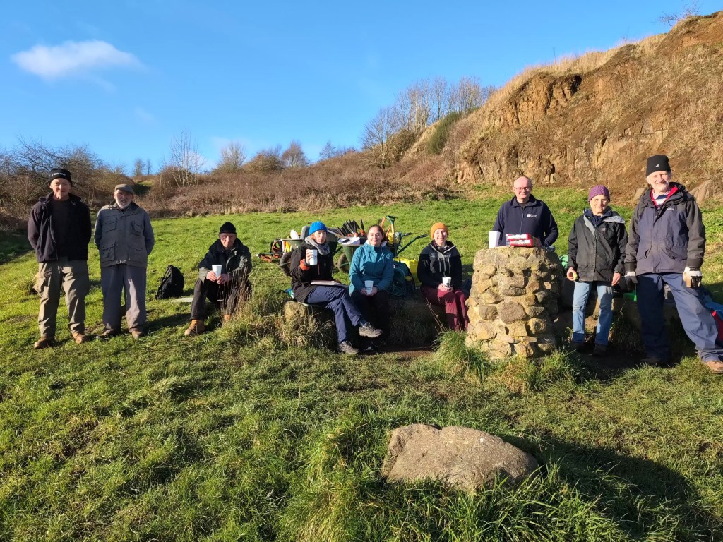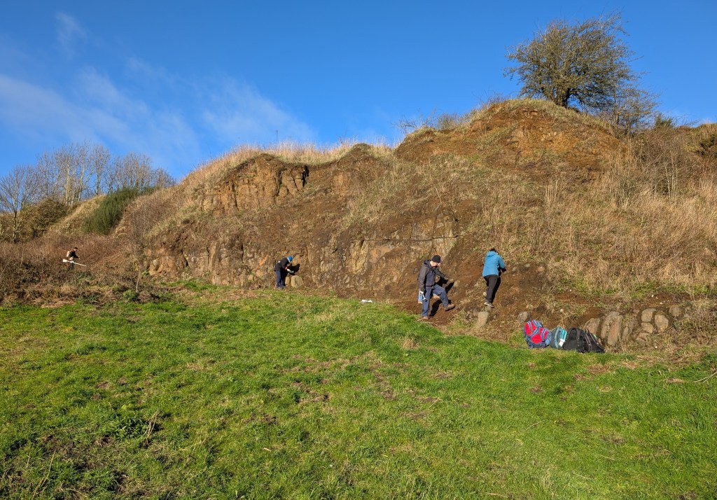 In December a joint meeting of the Black Country Geological Society and the Wildlife Trust was held on Portway Hill. Over the day another section of spheroidal weathering on the rockface was revealed.