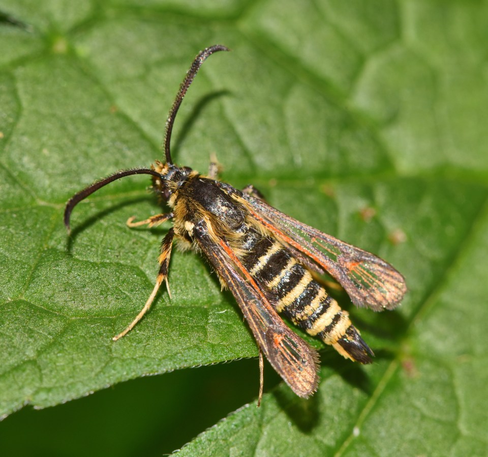 Six-belted Clearwing (Bembecia ichneumoniformis) (image © Mike Poulton) ← Previous Next → Like Loading...