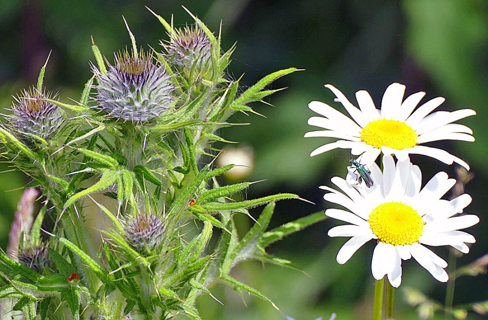 Spear Thistle (Cirsium vulgare) and Oxeye Daisy (Leucanthemum vulgare) (image © Graham Worton) ← Previous Next →